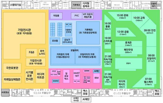 글로벌관에는 IBM, 알리바바, 딥로보틱스, MIT, 케임브리지대학 등 세계적 혁신 주체들이 참여해 최첨단 AI 기술을 전시한다. 주제별 전시관은 시민 생활과 밀접한 미래상을 제시한다.