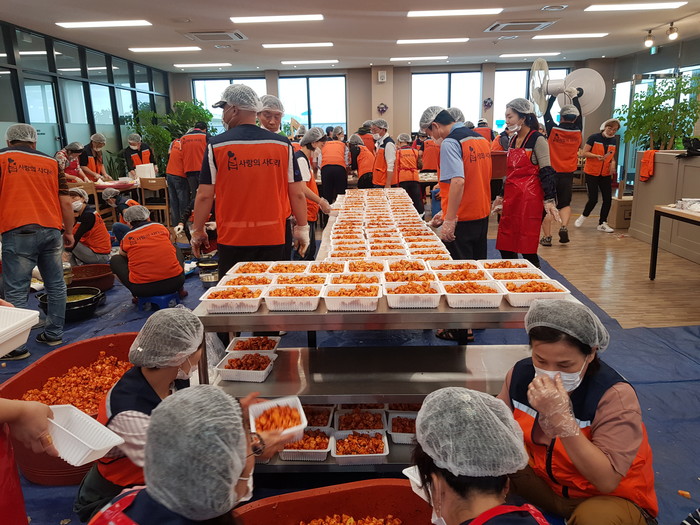 [대전=세계타임즈 이장성 기자] 대전시 SNS 봉사단체 사단법인 사랑의 사다리 밴드(리더 이정제)는 21일 오전9시, 유성구 탑립동에 위치한 코리아종합안전(대표 송철영)에서 대전시 소외계층 300가정에 사랑의 밑반찬 봉사로 우리 사회의 따뜻한 사랑을 전달하였다.