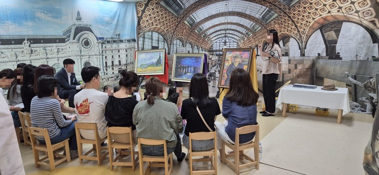 [남양주시 세계타임즈=송민수 기자] 경기구리남양주교육지원청 다산한강초등학교병설유치원(원장 이상호)은 9월 25일(수), 학부모와 유아가 함께하는「찾아가는 미술관 고흐체험전」을 개최했다. 이번 수업은 고흐의 명화를 주제로 다양한 놀이 활동을 진행하며 유아와 학부모가 명화와 친숙해지는 기회를 제공했다. 총 2시간 30분 동안 이루어진 이번 체험전은 학부모 98%의 높은 참여율을 보이며 성황리에 마무리되었다.
