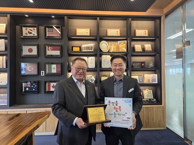 이학현 문산읍장은 “기업의 성장과 더불어 지역사회를 돌보는 사회적 책임을 실천해 주신 한울생약㈜에 깊이 감사드린다”라며 “이번 현판식이 나눔의 가치를 널리 알리고 더 많은 사업장이 동참하는 계기가 되길 바란다”라고 말했다.