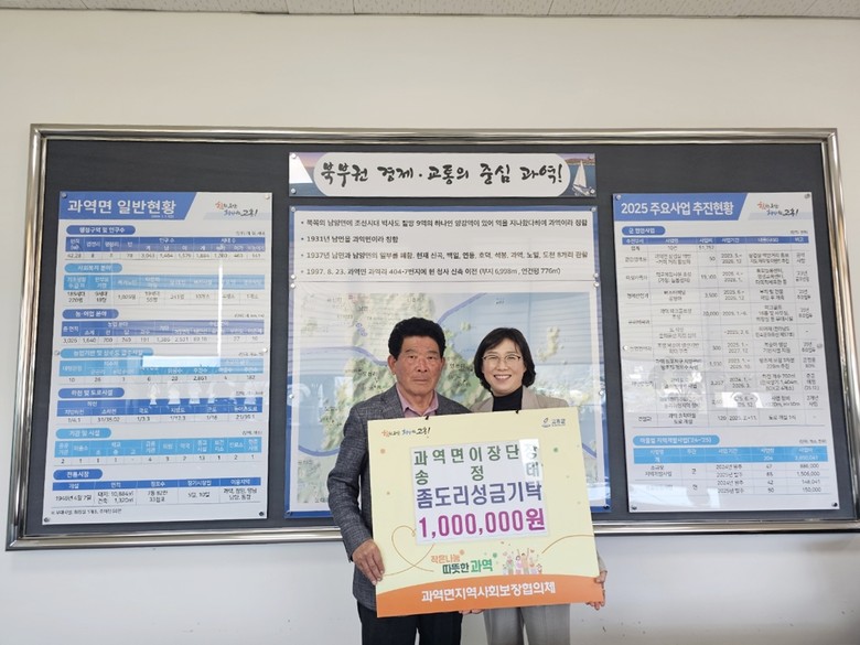 이은영 과역면장은 “작은 관심이 큰 사랑이 되고, 그 큰 사랑이 도움의 손길을 기다리는 어려운 이웃들에게 희망이 된다”며, “그 뜻을 새기고 나눔의 가치를 실천해 나가겠다”고 감사의 마음을 전했다.