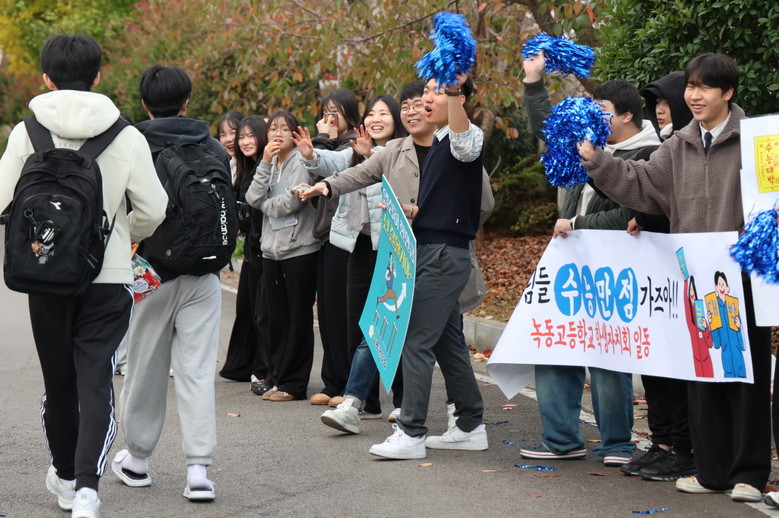 이날 양국진 고흥군 부군수를 비롯한 관계 공무원들은 이른 아침부터 시험장 앞에서 ‘수능 대박!’, ‘꿈은 이뤄진다!’ 등의 구호를 외치며 수험생들에게 힘찬 응원의 메시지를 전했다.