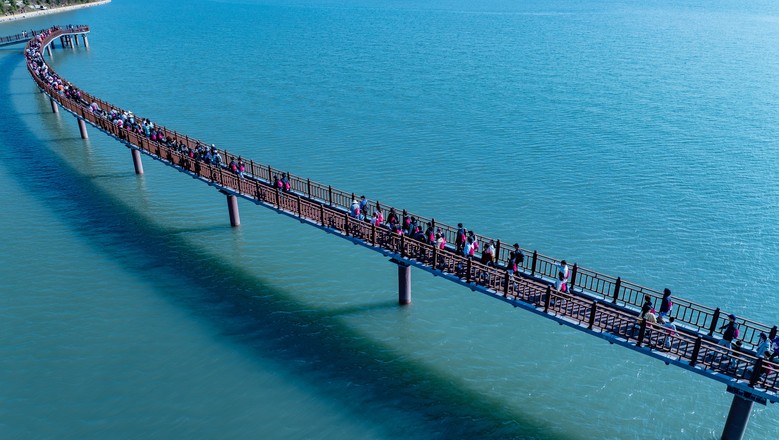 | ▲ 순천 화포해변 데크길을 걷고 있는 사람들 |