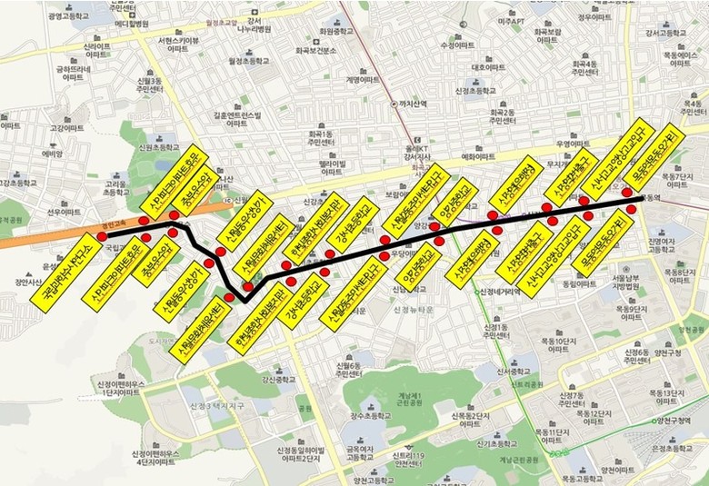 운행구간은 ▲신월3동주민센터 ~ 까치산역 ▲국립과학수사연구소 ~ 목동역 ▲서부트럭터미널 ~ 오목교역 ▲(신정7동)목동우성아파트 ~ 양천구청역 총 4개 노선으로 운영한다.