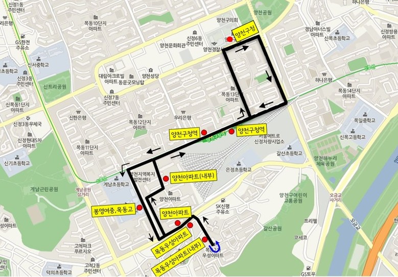 사진1) 양천구, 버스 파업 대비 무료 셔틀버스 운행구간(1노선)