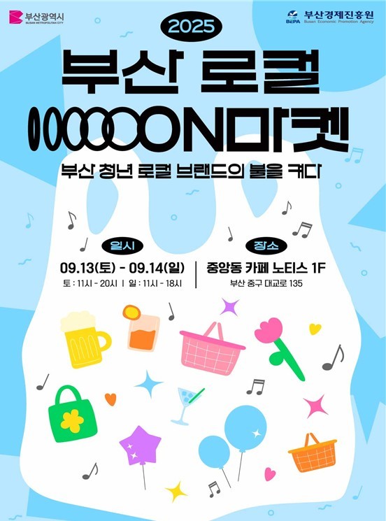 ◈ 청년 지역가치창출가(로컬크리에이터) 중심 콘텐츠를 창출해 지속 가능한 성장 기반을 마련 [세계타임즈=부산 이용우 기자] 부산시(시장 박형준)와 부산경제진흥원(원장 송복철)은 내일(13일)부터 14일까지 이틀간 카페 '노티스'(중구 중앙동 소재)에서 '2025 부산 로컬 온(ON) 마켓'을 개최한다고 밝혔다.