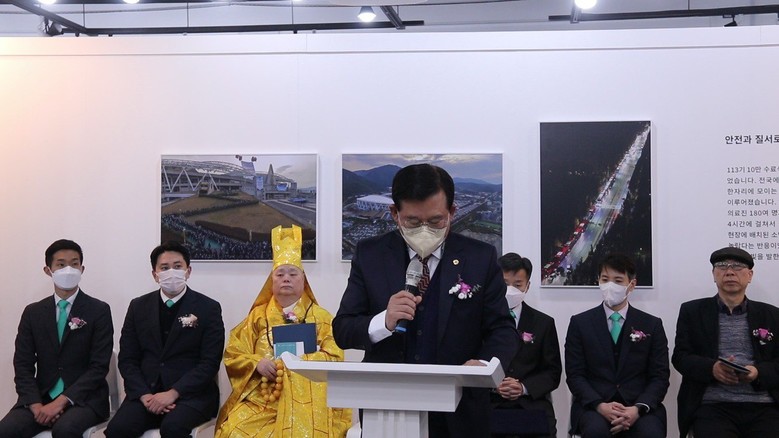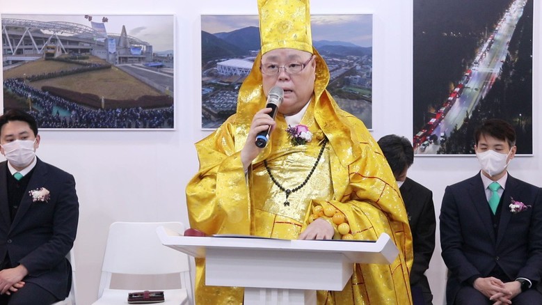 또한 축사자인 사단법인 대한불교 전국비구니진흥회 총재(일경 큰스님)는 “이번 주 재림과 추수실상의 현장 10만 수료식 사진전에 초대 되고 또 축사를 할 수 있어서 영광이다. 부처의 사명으로 오늘 신천지 교단에서 행하고 있는 역사적인 사명앞에 세상에 빛이 되는 영원불멸한 영광이 될 수 있도록 기원한다.”고 말했다.