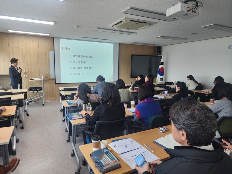 특히. 학교폭력을 주로 담당하고 있는 전문 변호사가 강사로 참여해 사례 중심의 연수를 통하여 신규 위원들이 실질적인 전문성을 갖출 수 있도록 했다.