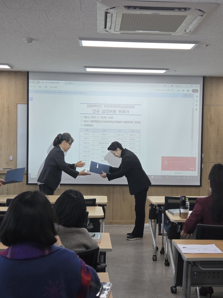 [세종 세계타임즈=이채봉 기자] 세종특별자치시교육청 학교지원본부(본부장 이미자, 이하 학교지원본부)는 신규 학교폭력대책심의위원회 위원 15명을 대상으로 2월 12일에 공정하고 타당한 심의를 지원하고자 신규 위원 기본 연수를 실시하였다.