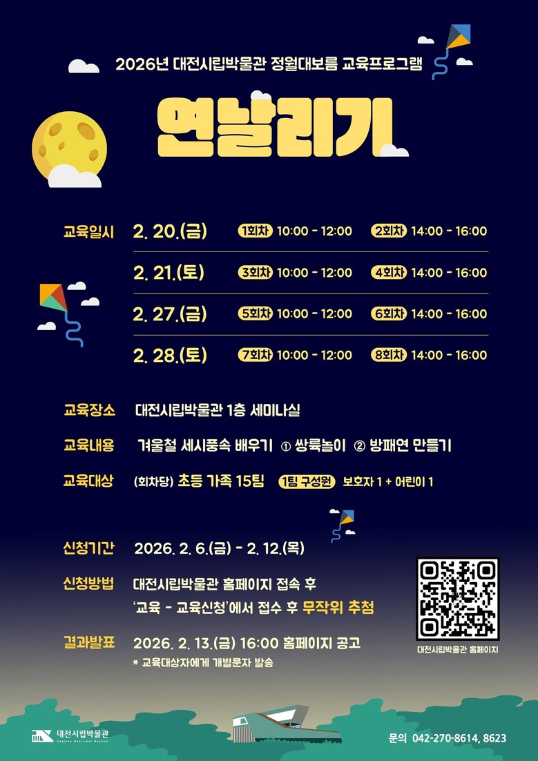 대전시립박물관장은 “대전시립박물관의 전통 세시풍속 체험 행사는 몸으로 직접 체험하며 전통문화를 느낄 수 있도록 박물관에서 준비하는 연례 행사로, 정월대보름의 의미를 가족, 친구와 함께 나누는 시간이 되길 바란다”고 전했다.