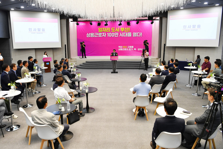 박형준 시장은 “현장에서 묵묵히 땀 흘리며 100만 상용근로자 시대를 함께 열어주신 시민, 지역 기업들에 깊이 감사드린다”라며, “모든 구직자가 상용근로자가 돼 좀 더 안정적인 삶의 기반 위에서 각자의 꿈을 펼칠 수 있도록 응원하며, 청년들에게 꿈과 기회가 열리는 상용근로자 150만 시대, 일자리 도시 부산을 목표로 더 열심히 뛰겠다”라고 전했다.