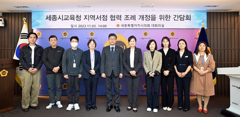 [세종 세계타임즈=이채봉 기자] 세종특별자치시의회 여미전 의원(더불어민주당, 비례대표)은 3일 의회청사 1층 대회의실에서 ‘교육청 지역 서점 협력에 관한 조례 개정을 위한 간담회’를 개최했다.