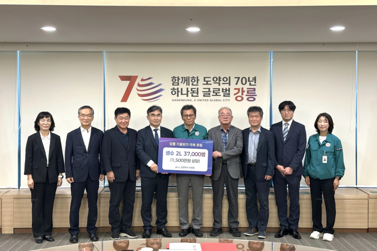 [강원도 세계타임즈=김민석 기자] 강원학사 출신들의 모임인 숙우회는 9월 9일(화), 강릉시청을 방문하여 가뭄 위기 극복을 위한 생수 2리터 37,000병(약 1,500만 원 상당)을 전달했다.