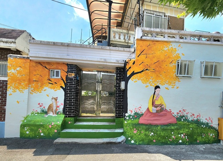 또한 벽화 마지막 부분은 금수강산 이미지에 태양열 조명의 보름달을 형상화해 정적인 포토존을 마련함은 물론 주민들의 야간 보행 환경도 개선했다.