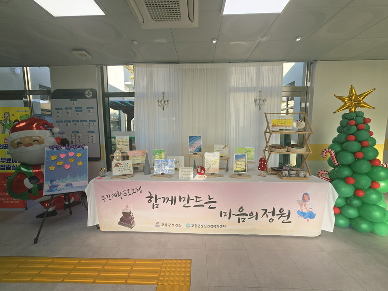 [고흥군 세계타임즈=우덕현 기자] 고흥군(군수 공영민) 보건소는 정신건강복지센터 주간 재활프로그램 회원들의 작품 전시회를 지난 12월 10일부터 26일까지 보건소 민원실 앞에서 개최하고 있다고 밝혔다.