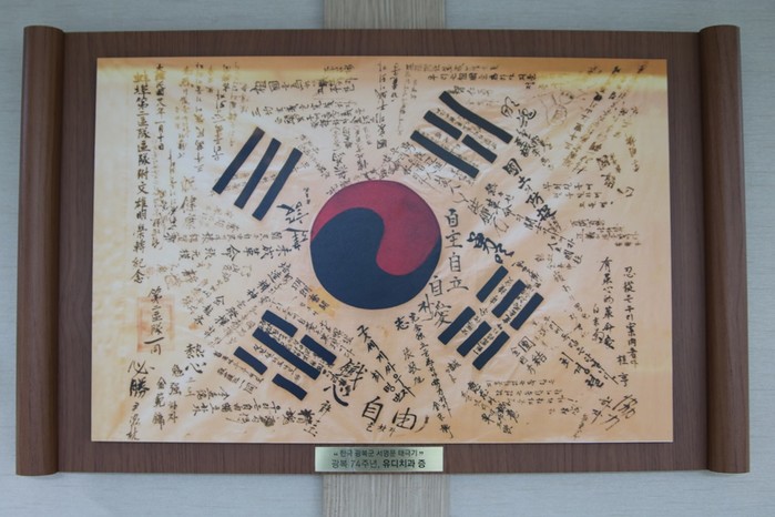 | ▲독도·울릉도 경비대에 전달한 ‘광복군 서명 태극기’ 나무족자 이미지 |