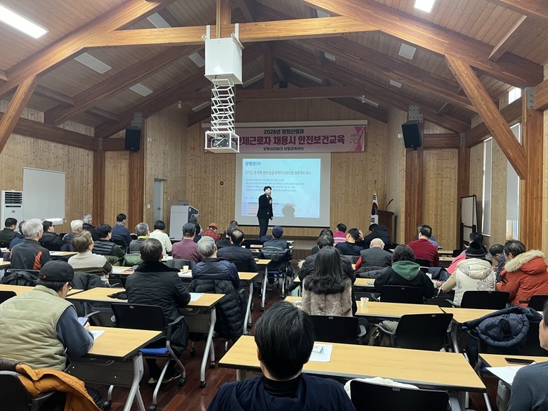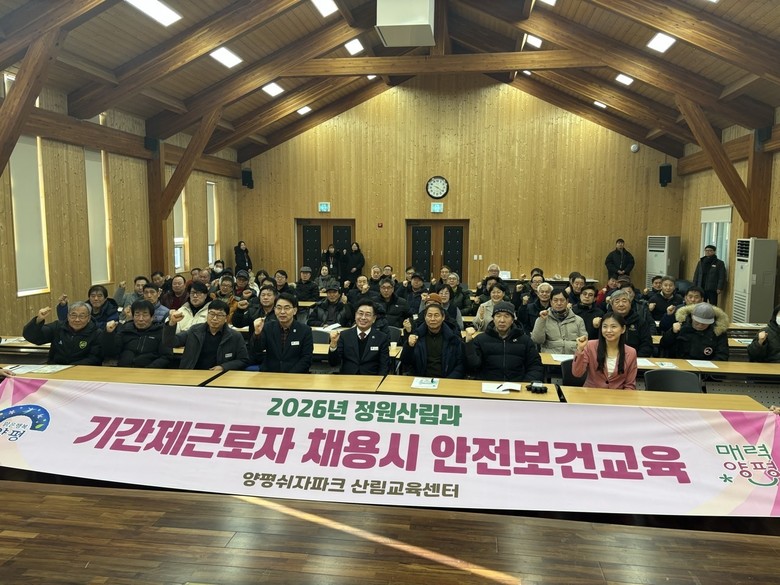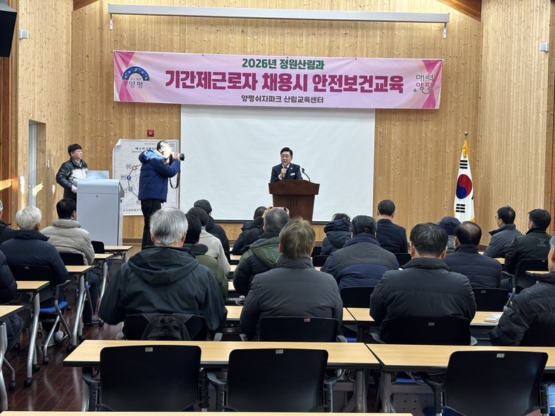 [양평군 세계타임즈=송민수 기자] 양평군(군수 전진선)은 지난 29일 쉬자파크 산림교육센터에서 2026년 정원산림과 기간제근로자로 신규 채용된 근로자 55명을 대상으로 ‘산업안전보건법’에 따른 산업안전·보건 교육을 실시했다.
