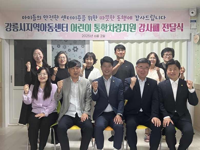 이번 감사패는 강릉을 지역구로 두고 있는 박호균, 최승순, 김용래 도의원이 강릉시 지역아동센터의 10년 이상 노후된 어린이통학차량 교체에 기여한 공로를 인정받아 수여된 것으로,