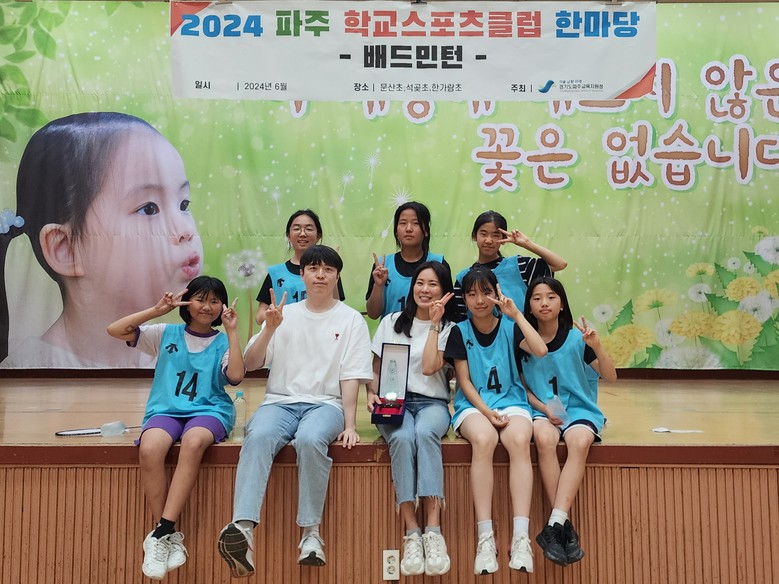 여자 배드민턴대회는 석곶초에서 6월 14일에 예선리그에서 산내초와 석곶초를 큰 점수차로 모두 이기고 1위로 결승리그에 올랐으며, 지난 6월 28일에 문산초에서 열린 여자배드민턴에서는 문산초를 이기고 결승에 진출하여 우승하였다.