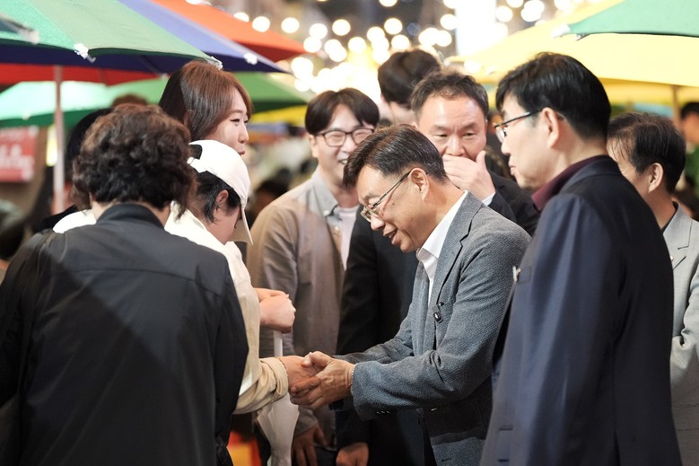 | ▲신상진 성남시장이 야맥축제에서 시민들과 소통하고 있다.(사진=성남시) |