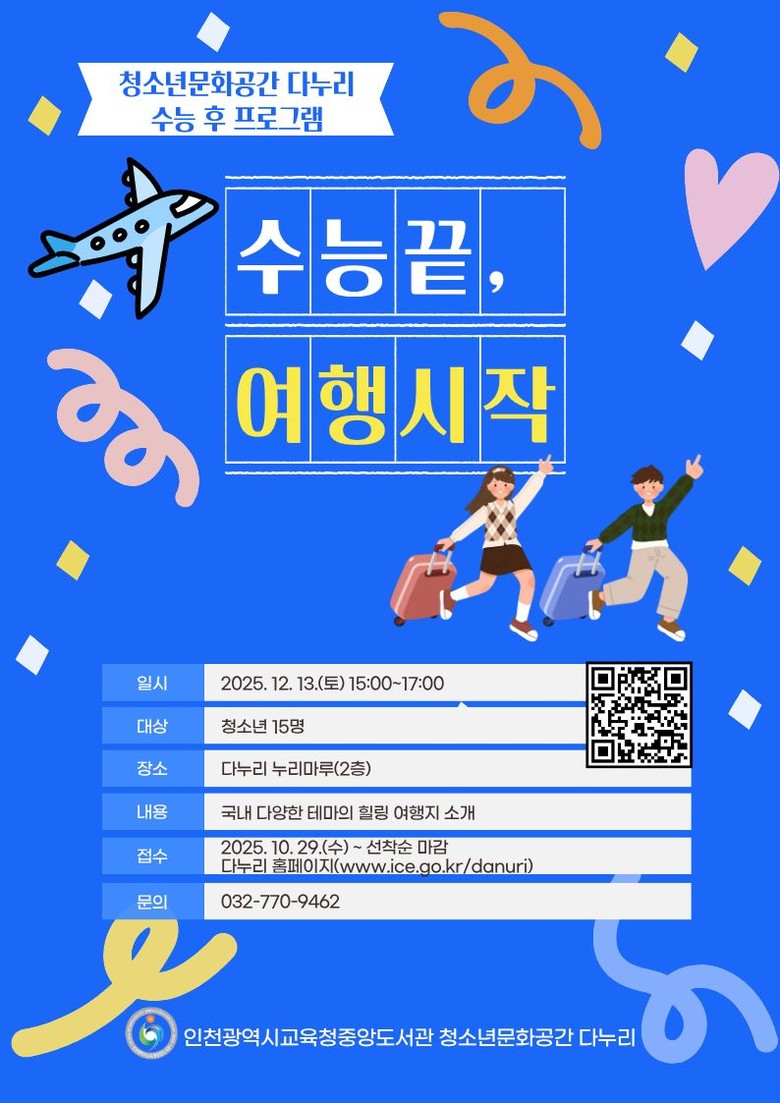자세한 사항은 다누리 누리집을 참고하거나 청소년문화공간 다누리(☎032-770-9462)로 문의하면 된다.
