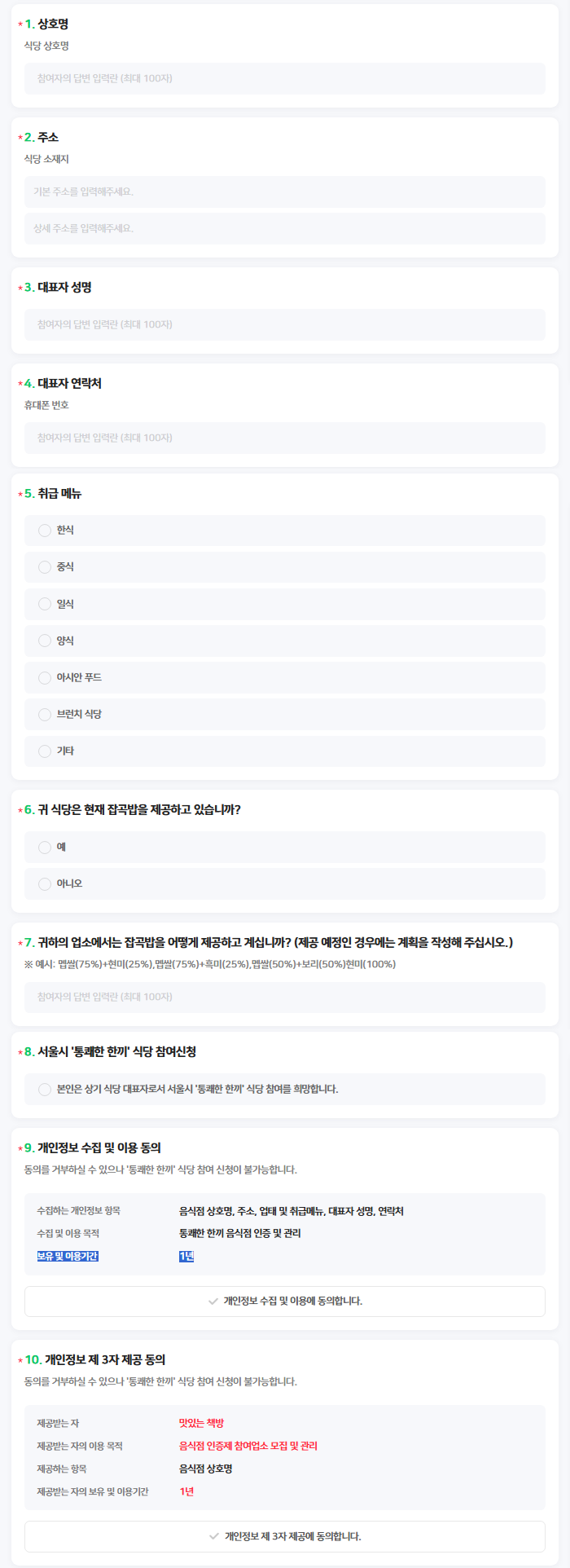 참여 신청은 20일(월)부터 서울시 누리집에 게시된 네이버폼.구글폼을 통해 영업장명, 소재지, 잡곡밥 제공 현황(또는 계획) 등을 제출하면 조사단이 기준 충족 여부를 확인한 뒤 ‘통쾌한 한끼’ 식당으로 최종 지정한다.