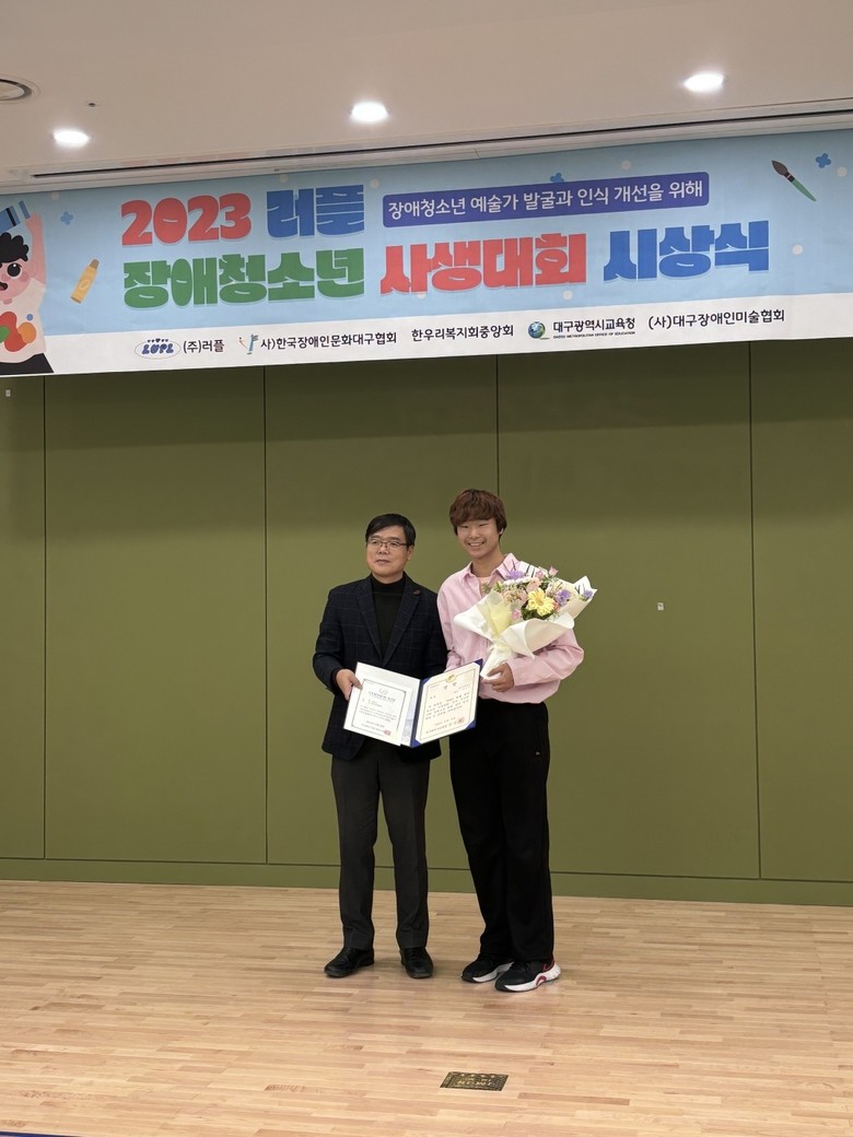 [대구 세계타임즈=한윤석 기자] 대구선명학교(교장 이천우)는 고등부 이은수 학생이 2023년 11월 25일(토) 대구스포츠산업지원센터에서 개최된 ‘2023 러플 장애청소년 사생대회’ 시상식에서 대상을 수상을 했다고 밝혔다.