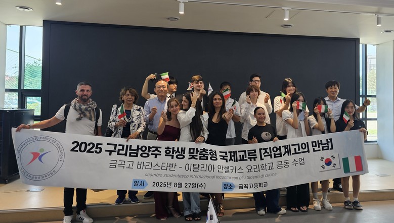 [남양주시 세계타임즈=송민수 기자] 구리남양주교육지원청(교육장 서은경)은 8월 27일(수) 금곡고등학교에서「직업계고 학생 맞춤형 국제교류 프로그램」을 운영하였다. 이번 교류에는 금곡고등학교 제과제빵과 학생들과 이탈리아 안셀키스 요리학교 학생들이 참여하였다.