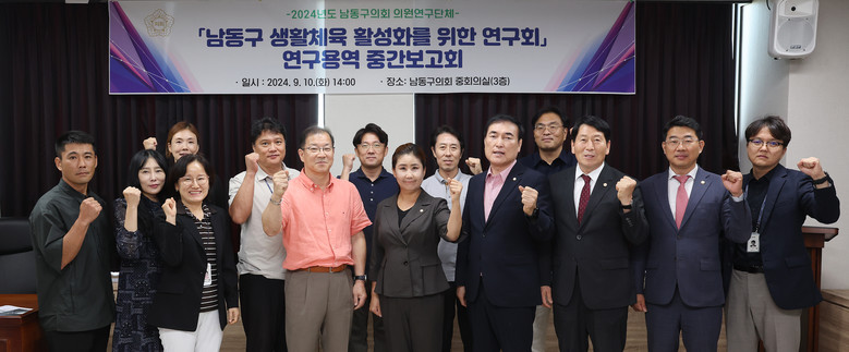 [남동구 세계타임즈=심하린 기자] 남동구의회 의원 연구단체 「남동구 생활체육 활성화를 위한 연구회」(회장 김은숙 의원)가 지난 10일 남동구의회 중회의실에서 생활체육 활성화 방안 연구용역 중간보고회를 개최했다고 11일 밝혔다.