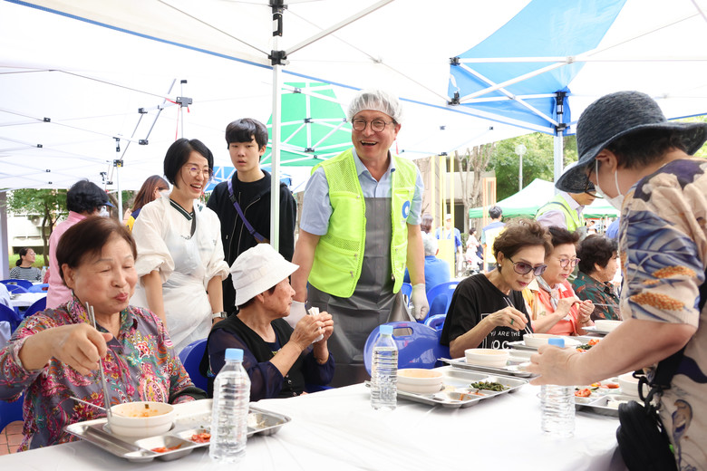 도 교육감과 자원봉사자들은 음식 조리·도시락 준비·배식·정리 등을 맡아 400여 명에게 중식을 지원했으며, 보건봉사단 교사 6명이 참여해 건강부스를 운영하며 어르신들의 혈압과 혈당 등을 검사했다.