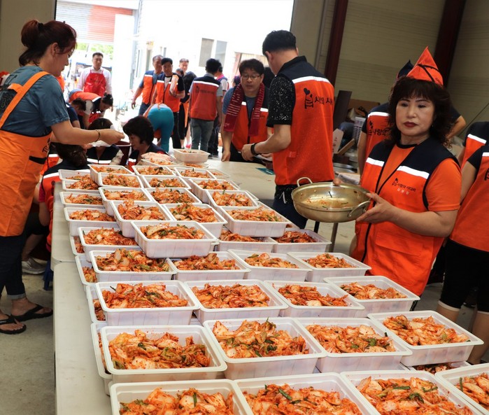 이날 밑반찬 봉사는 오이양파피클(팀장 김봉임),배추겉절이(팀장 정숙일), 무짱아치(팀장 이현주) 3가지 종류를 만들었다.
