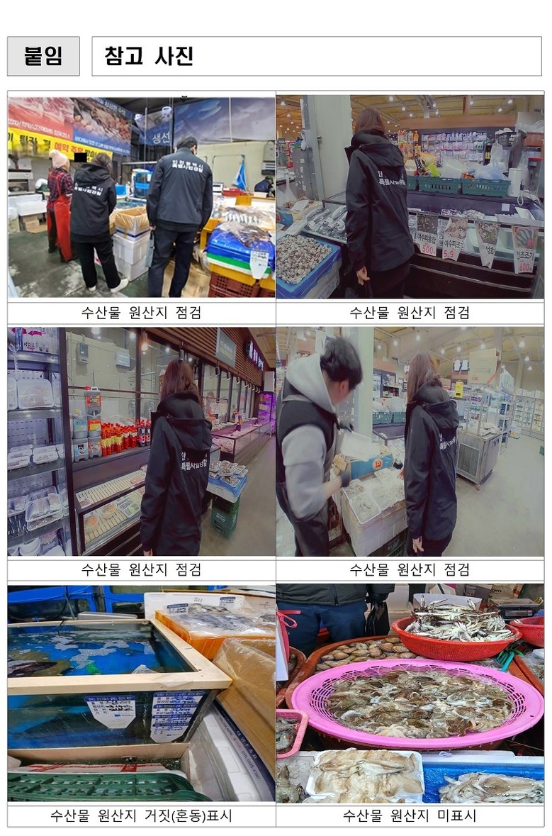 최종문 시 특별사법경찰과장은 “역 주변 상권은 유동 인구가 많아 원산지 표시 위반이 발생할 경우 소비자 피해가 크다. 앞으로도 정기.수시 점검을 통해 위법 행위를 지속적으로 단속하겠다”고 밝혔다. 이어 “소비자들도 수산물 구매 시 원산지 표시를 반드시 확인해 달라” 라고 당부했다.