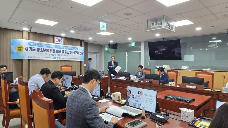 최종보고회에는 경기도 직업인성교육연구회 회원인 김호겸 의원과 연구용역을 수행한 (사)한국직업인성개발원 원장 이재춘 책임연구원, 관계 공무원들이 참석해 심도 있는 논의를 나눴다.
