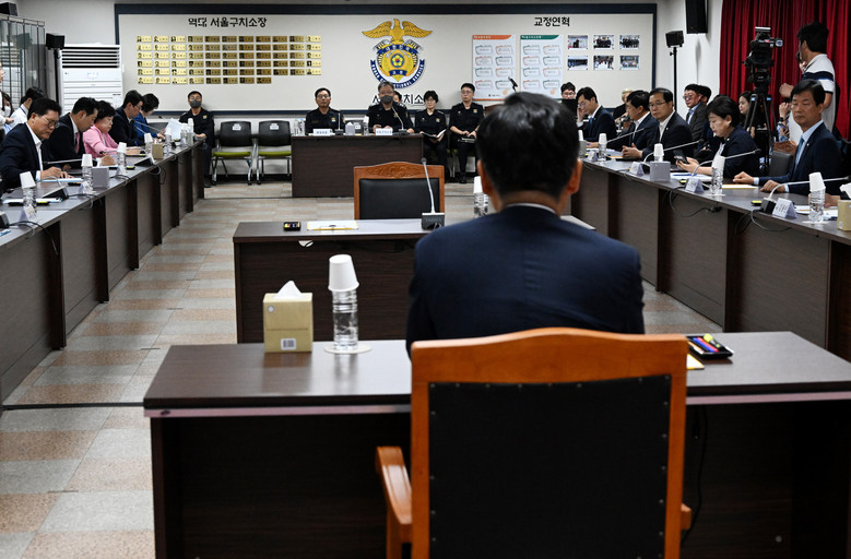 [세계타임즈 = 심귀영 기자] 김문태 서울구치소장과 조영기 출정과장이 19일 오전 경기도 의왕시 서울구치소에서 진행된 국회 에 참석하고 있다. 2024.8.19 [국회사진기자단]