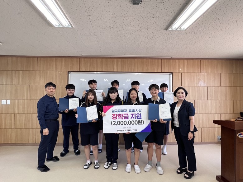 선기주 ㈜엠알티 대표이사는 “제78회 개교기념일을 맞이하여 모교인 임곡중학교 후배들에게 장학금을 전달할 수 있어서 매우 뜻깊게 생각한다”며 “앞으로도 후배들이 자긍심을 가지고 미래로 나아가길 바란다.”라고 격려하였다.