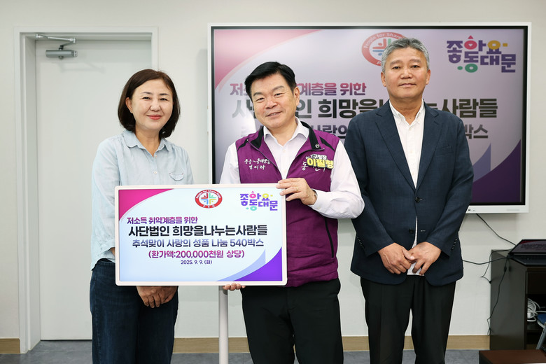 이에 이필형 동대문구청장은 “어려운 이웃을 위해 후원해주신 (사)희망을나누는사람들에게 깊이 감사드린다.”라며 “구에서도 지역사회와의 협력을 바탕으로 든든한 지원 체계를 구축해 나가겠다.”라고 밝혔다.
