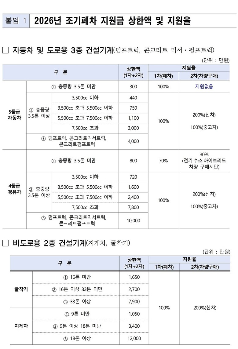 보조금은 보험개발원 기준가액에 따라 차등 지급되며, 총중량 3.5톤 미만 4등급 경유차의 경우 최대 800만 원을 지원받는다.