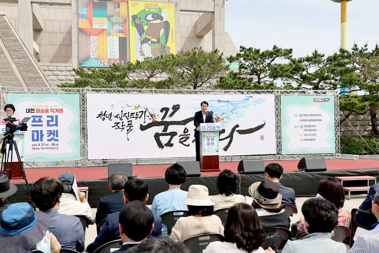 [대전 세계타임즈=이채봉 기자] 대전시의회 이상래 의장은 28일 대전시립미술관 광장에서 열린 ‘2024년 대전 미술품 직거래 프리마켓’에 참석해 박경수 대전사랑운동센터장, 김숙현 대전시립미술관 후원회장을 비롯한 내빈들과 인사를 나눴다.