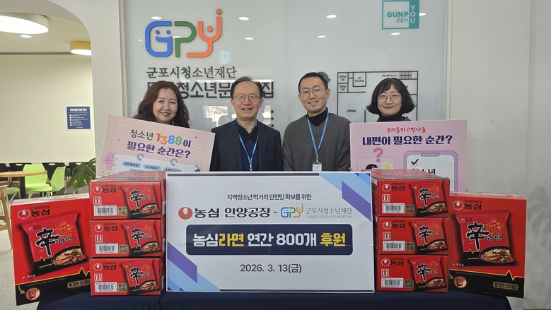 이번 협력은 지역 기업과 공공 청소년기관이 함께 지역사회 청소년의 먹거리 안전망을 강화하기 위해 추진된 것으로, 농심 안양공장은 분기별 10박스씩 연 4회 라면을 지원할 예정이다. 1박스당 20개입 기준으로 연간 총 800개의 라면이 군포 지역 청소년들에게 전달된다.