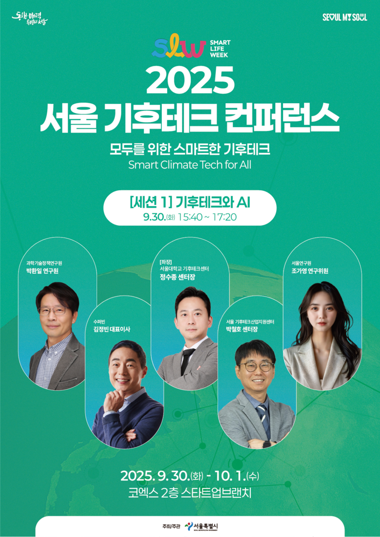 서울대 기후테크센터 정수종 센터장은 ‘기후를 바꾸는 인공지능의 힘’을 주제로 발표하고, 수퍼빈 김정빈 대표는 AI를 활용한 순환경제 기업 사례를 소개한다. 이어지는 패널토론에서는 “AI 기술이 기후위기를 극복할 수 있는가”라는 질문을 중심으로 다양한 해법이 공유될 예정이다.