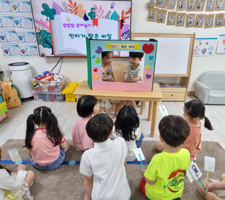 5세반 김○○ 유아는 “책 속 주인공처럼 동극하니까 진짜 재미있었어요. 다시 하고 싶어요!”라며 밝은 미소를 보였다.