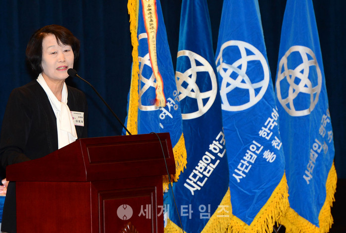 10일 오전 서울 여의도 국회 헌정기념관에서 열린 한국여성유권자연맹 2017년 신년하례식·전국여성리더 네트워크에서 이희자 중앙회장이 신년사를 하고 있다. 2017.02.10.