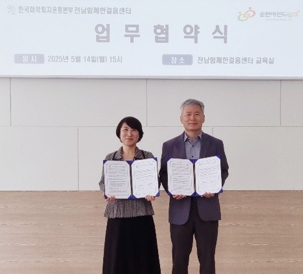순천청년마음건강센터는 전남함께한걸음센터와 지역 청년에 대한 정신건강 상담 및 사례관리, 자문활동, 교육에 대한 상호협력을 추진하고 청년 대상 약물 오남용, 마약류 중독 예방교육 및 프로그램 지원 제공으로 심리 정서적 안정을 도모하도록 협력할 예정이다.