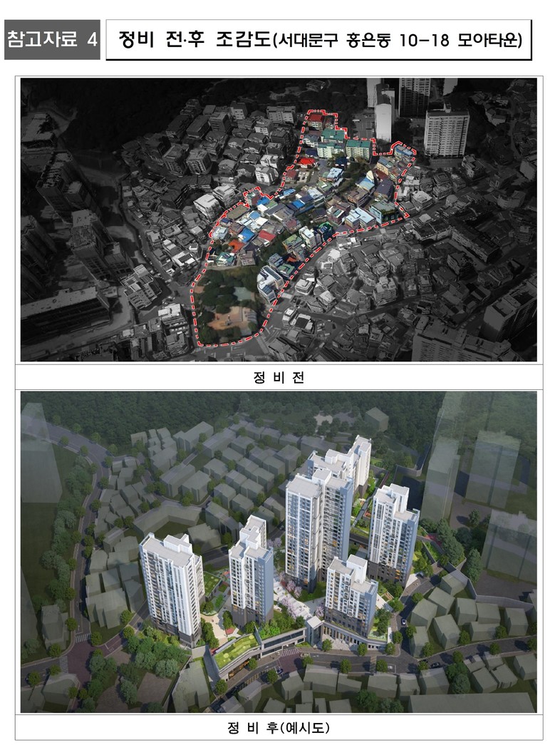 서대문구 홍은동 10-18번지 일대는 모아타운 사업으로 기존 140세대에서 181세대 늘어난 총 321세대(임대 38세대 포함)를 2030년까지 공급할 예정이다.