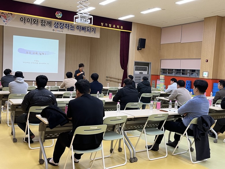 [시흥시 세계타임즈=송민수 기자] 빛가람유치원(원장 이귀열)은 자녀양육에 적극적인 관심으로 함께하는 아빠들을 위하여 일정을 11월8일 퇴근시간 이후로 계획하여 아버지교육을 실시하였다.