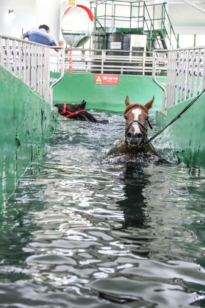 실제로 2019년 두바이 월드컵 결승에 출전했던 돌콩(이태인 마주, 배대선 조교사)을 비롯하여 뉴시타델(이성재 마주, 배휴준 조교사), 상감마마(이관형 마주, 박병일 조교사)등 간판스타 경주마들도 부상 방지 및 심폐기능 강화를 위해 수영훈련을 꾸준히 실시하고 있다. 또한 2018 브리더스컵 우승마인 부산경남 경마장의 킹삭스(김창식 마주, 김영관 조교사)는 다리부상으로 인한 오랜 공백을 딛고 1년 4개월만에 경주로로 복귀를 앞둔 상황에서 현재 수영훈련에 집중하며 컨디션을 끌어올리고 있다.