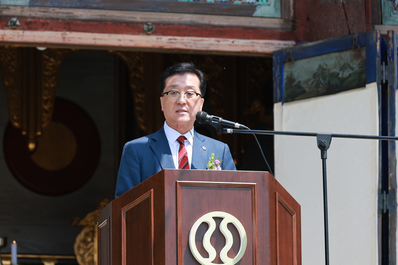 [대전 세계타임즈=이채봉 기자] 대전시의회 조원휘 의장은 12일 수운교 도솔천(유성구 추목동)에서 개최된 수운천사 탄강 제204주년 기념 봉축법회에 참석해 대전시민의 건강과 편안을 기원했다.