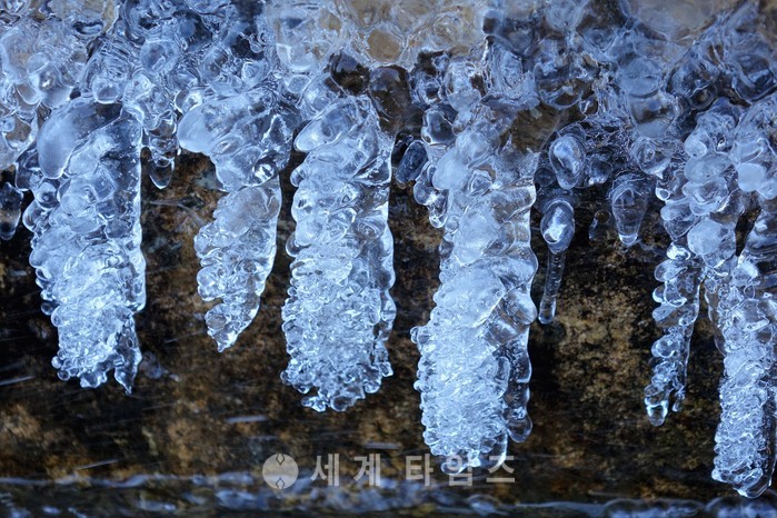 봄 기운이 일어선다는 입춘(立春)이 지난지 일주일째인 10일 오전 매서운 추위가 옷깃을 여미게 하고 있는 가운데, 울산시청 햇빛광장에 조성된 연못가 한 모퉁이에서 얼음꽃이 고드름처럼 피어나고 있다. 2017.02.10.