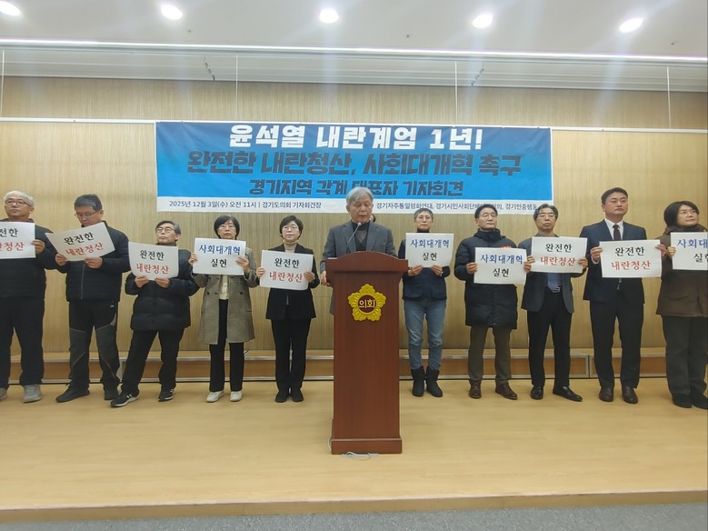 | ▲'윤석열 내란계엄 1년!완전한 내란청산,사회대개혁 촉구' 경기지역 각계대표자 기자회견 현장. |