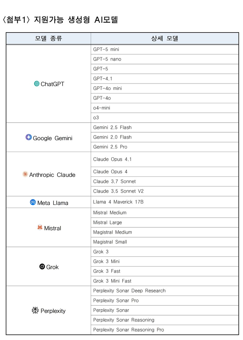 - 챗GPT‧클로드‧제미나이‧퍼플렉시티 등 29개 모델, 업무특성 맞게 활용할 수 있어